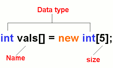 The data type must be stated twice. The left hand side creates a reference while the right hand side actually reserves the memory for the array. This is standard java so you get used to it! The size must be stated when the memory is reserverd. As arrays are static you can not change the size once the memory has been assigned.