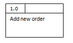 Internal processes can be split into multiple levels which allow extra detail to be looked at. Consider the process - This could be split down by looking at the validation. The above diagram shows that the add order process actual involves a number of steps, including a error response if a invalid product has been chosen. A new data source, products, has been added which could have been overlooked if the process had not been broken down. The numbering is very important here. Each process starts with the number 1.x to show it is the break down of process one. We call this a level 1 diagram. The original diagram is called a level 0 diagram. If we decided more detail was required for process 1.2 (Calculate special offers) then we would draw a level 2 diagram. The processes would then be numbered 1.2.1, 1.2.2, 1.2.3 and so on. |