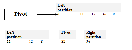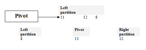 Step 3 - Recursion We now must recursively apply the same procedure to both the left and right partitions. Here is the result of the pass on the left partition. 32 is now said to be sorted. If we look at what we have so far we have - The stars represent the elements which are considered sorted. Now again the left partition must be sorted. 11 is now sorted. The left partition now has only got one element in it. This means it must be already sorted so we leave it alone. Next we check the right partition. It is only one element so must be sorted. We now get the following result.