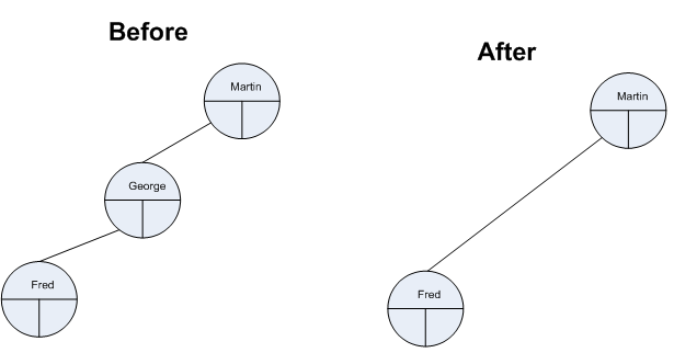 The parent node will have its pointer changed to point to the child of the node being removed.