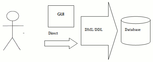 Databases store data, this we already know. However we have not looked at how we communicate with the database. There is also the question of how the data is stored however this question is outside the scope of this course. Some of you may of only ever seen graphical front ends to databases. However these are not how we communicate with the data base. We use a special language to communicate with the database. What the front ends do is use the language to communicate with the database. The diagram shows this below. The end result is always the same. On the diagram the big arrow is labelled with the acronyms DML and DDL. These stand for data manipulation language and data definition language. We shall look at how these work using SQL (Structured query language).
