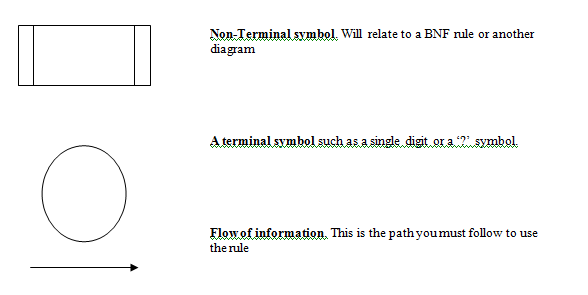Backus Naur form is what the compiler requires in order to be able to do syntax analysis however it is not very human readable. When the added complexity of recursion is added we tend to have a very difficult to read rule. In order to help we can define our rules in a diagram form to help a human reader to understand. It is important to remember however that a computer will not be able to use the diagram directly to do syntax analysis and as such it must be converted to BNF in order for the compiler to do its work.