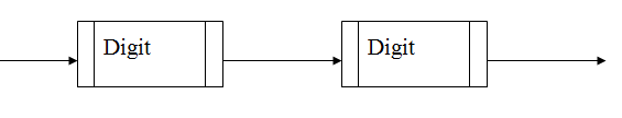 <Two_Digit_Number> ::= <Digit> <Digit> The rectangular symbol shows a non-terminal symbols. As we know a digit is itself a rule. As such can be broken down into 0 | 1 | 2 | 3 | 4 | 5 | 6 | 7 | 8 | 9 . To show two digits one after the other all we need to do is put them next to each other on the diagram.